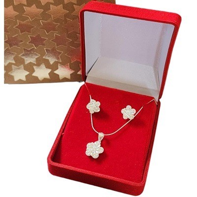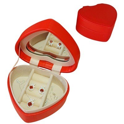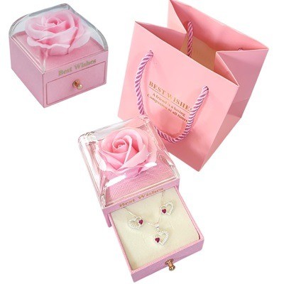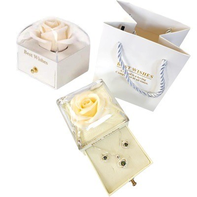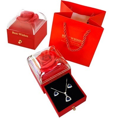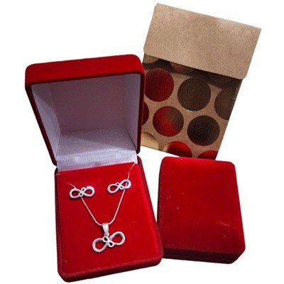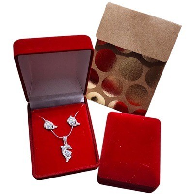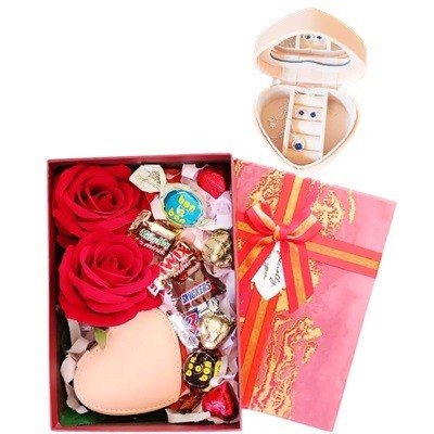 Caja de regalo (Joyero y set de plata con rosas artificiales y chocolates)