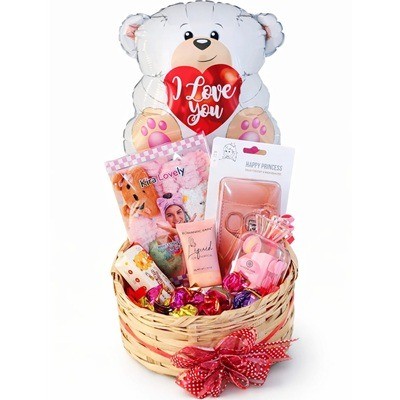 Taza con chocolates + globo corazones
