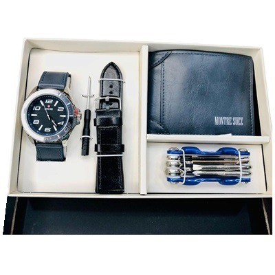 Set de billetera más reloj más faja de reloj con mini destornillador más navaja multiusos
