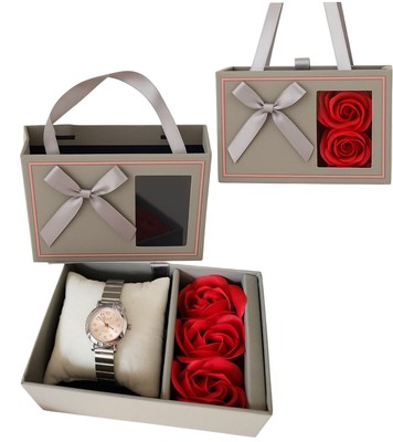 Reloj acerado en caja con rosas
