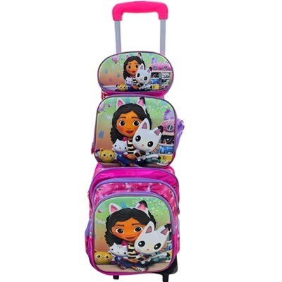 Mochila con rueditas + cartuchera + lonchera Gabby cats