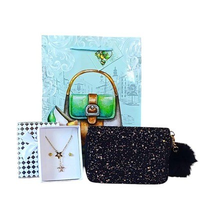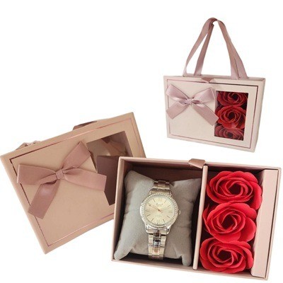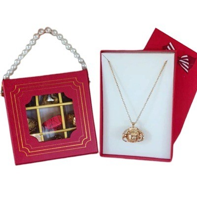 Caja de regalo (Joyero y set de plata con rosas artificiales y chocolates)